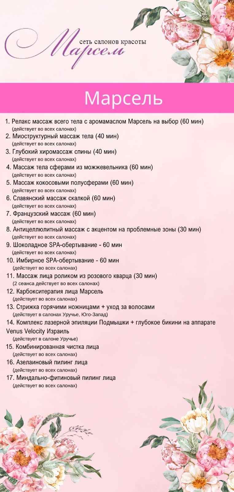 17 незабываемых услуг на выбор включая массажи, уходы за лицом и телом, стрижки, лазерную эпиляцию к весеннему сезону.
